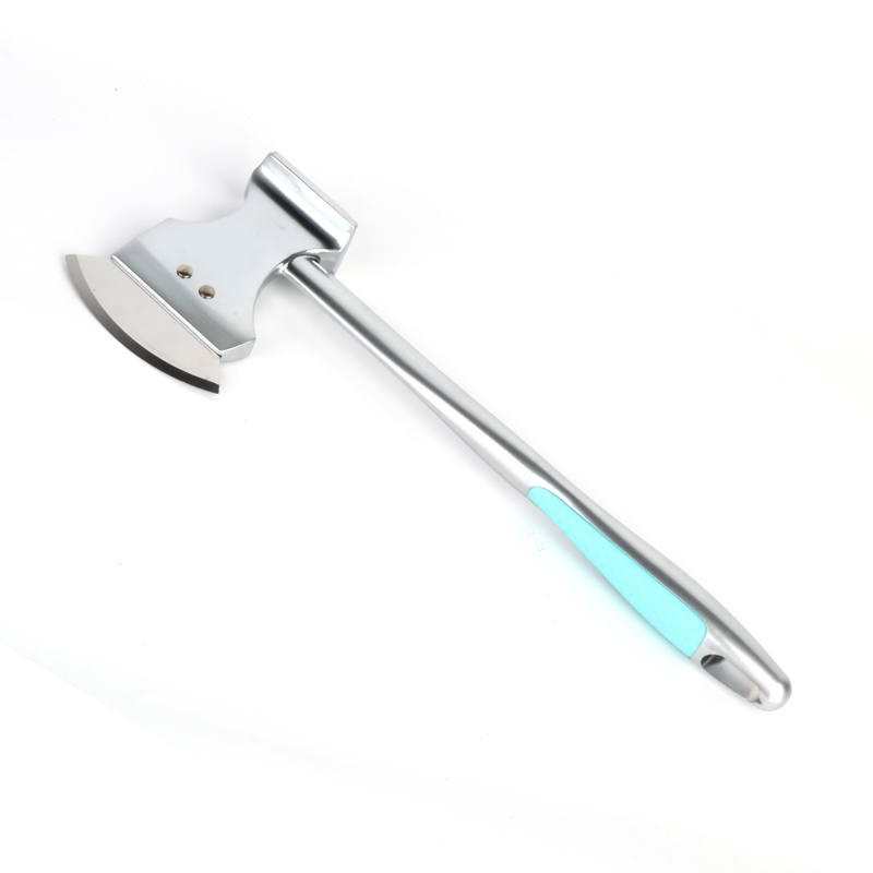 Pizza mozteko pala kalitate handiko 304 altzairu herdoilgaitzez egina dago, eta bere diseinua aizkora baten forman inspiratuta dago, itxura praktikoagoa eta ikusmen erakargarriagoa duena. Tresnak pisu moderatua du, erabiltzeko erraza eta bere funtzioetan aldakorra da. Haragia leuntzeko edo pizza mozteko erabiltzen den ala ez, xafla fruta eta hezurra kentzeko ere erabil daiteke. barazkiak eta frutak txikitzeko beste aiztorik ez dagoenean.