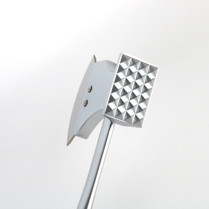 Diseinu berriko zink aleaziozko haragi-ebakitzaile gisa eta pizza mozteko balio duen tresna bakarrak 25 cm-ko luzera du. Aurrealdeko muturra bi gainazal funtzionaletan banatzen da: bata haragia leuntzeko eta bestea pizza mozteko. Heldulekua arku-forma optimizatuarekin diseinatuta dago eta heldulekutik hurbil dagoen heldulekuaren zatia helduentzako plastikozko helduentzako lodiagoa da, helduen esku batekin lodiagoa den plastikozko heldulekuarekin. heldulekuaren isatsa palmondoko mina murrizteko eta erosotasuna areagotzeko erabilera luzean.
