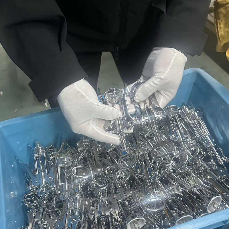 Ardoaren kortxoen hutsuneetako errebak eta ertz-ertzak kendu ondoren, ekoizpen-prozesuak leuntze- eta garbiketa-eragiketei ekin dio. Gure enpresak hamar garbiketa-makina eta gainazaleko akabera-ekipo baino gehiago ditu, produktuaren gainazaleko akaberan uniformetasuna eta koherentzia mantentzea ahalbidetuz. Eragiketa honen abantailarik handiena amaitutako produktu guztiek gainazaleko akabera uniformeak izango dituzte.