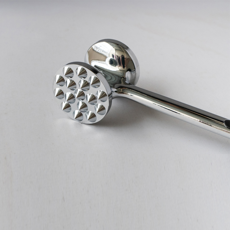 Jinhua Hanjia Commodity Co.,Ltd-ek ekoitzitako zink-aleazioko haragi-lezitzailea da, galdaketa prozesu integratuaren bidez fabrikatua. Metalezko gainazala eskuz arretaz leundu eta produktu osoa elektro-xaflatze prozesu segurua jasaten da. Gero, estaldura pasibatzen da altzairua bezain gogorra izan dadin. Haragi-lezigailuaren aurrealdearen eta atzealdearen arteko banaketa urrezko proportzioaren arabera diseinatuta dago, erabiltzaileek haragia gutxieneko ahaleginarekin kolpatzeko aukera emanez, mailu-buruaren grabitatean soilik oinarrituz. Haragi-lezigailuaren buruak bi gainazal desberdin ditu haragi mota desberdinetarako. Heldulekuaren bi alboetako plastikozko bufferek erosotasuna eskaintzen dute luzaroan erabiltzeko. kostua eredu tradizionalekin alderatuta %13 baino gehiago da, gainera, oso erraza da garbitzen, besterik gabe, urarekin garbitu edo ontzi-garbigailua erabil dezakezu.
